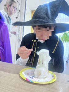 お誕生日の方にはおばけのケーキを💕求肥を使ったケーキだったので、ケーキが伸びるの?っと不思議そうに食べられていました!(笑)