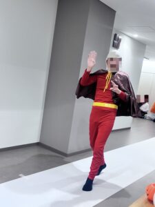1グループ目は、ファッションショーをしよう♪っと廊下にランウェイを作り、仮装したキャラっぽく歩いて頂きました~!