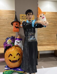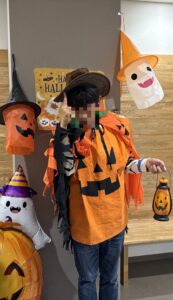 ハロウィンをテーマにした家族交流会が残念ながら中止になってしまいました。その分も気合を入れたハロウィンにしよう!という事で朝からウキウキと仮装準備をしました。