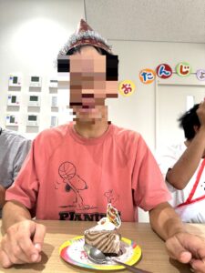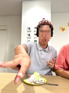 6人それぞれ違う味のアイスケーキです。上にのせてあるキャラクターで選ぶ方や味で選ぶ方がおられました⭐ホッピングシャワーを選ばれた方は思った以上にシュワシュワしたのか驚きながらも食べられていました(笑)